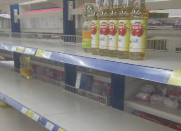 Опасаясь инфляции, украинцы смели с полок магазинов продукты длительного пользования. Резко возрос спрос на муку, крупы, рис, подсолнечное масло. Часть сетей ввели ограничения на продажу продуктов в больших объемах