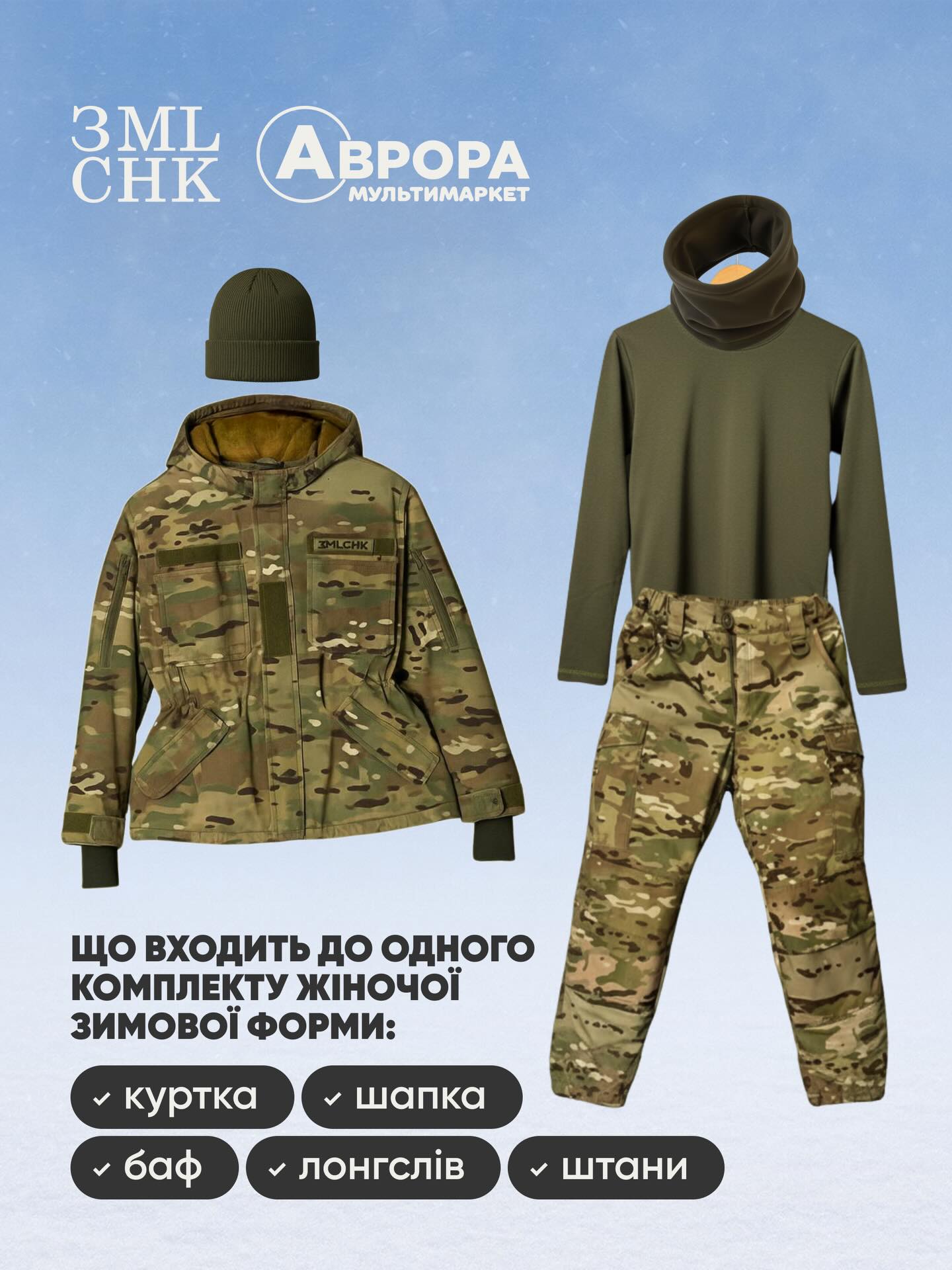 Мережа мультимаркетів "Аврора" та громадська організація "Землячки" зібрали 10 млн грн на пошиття зимової форми для українських захисниць.