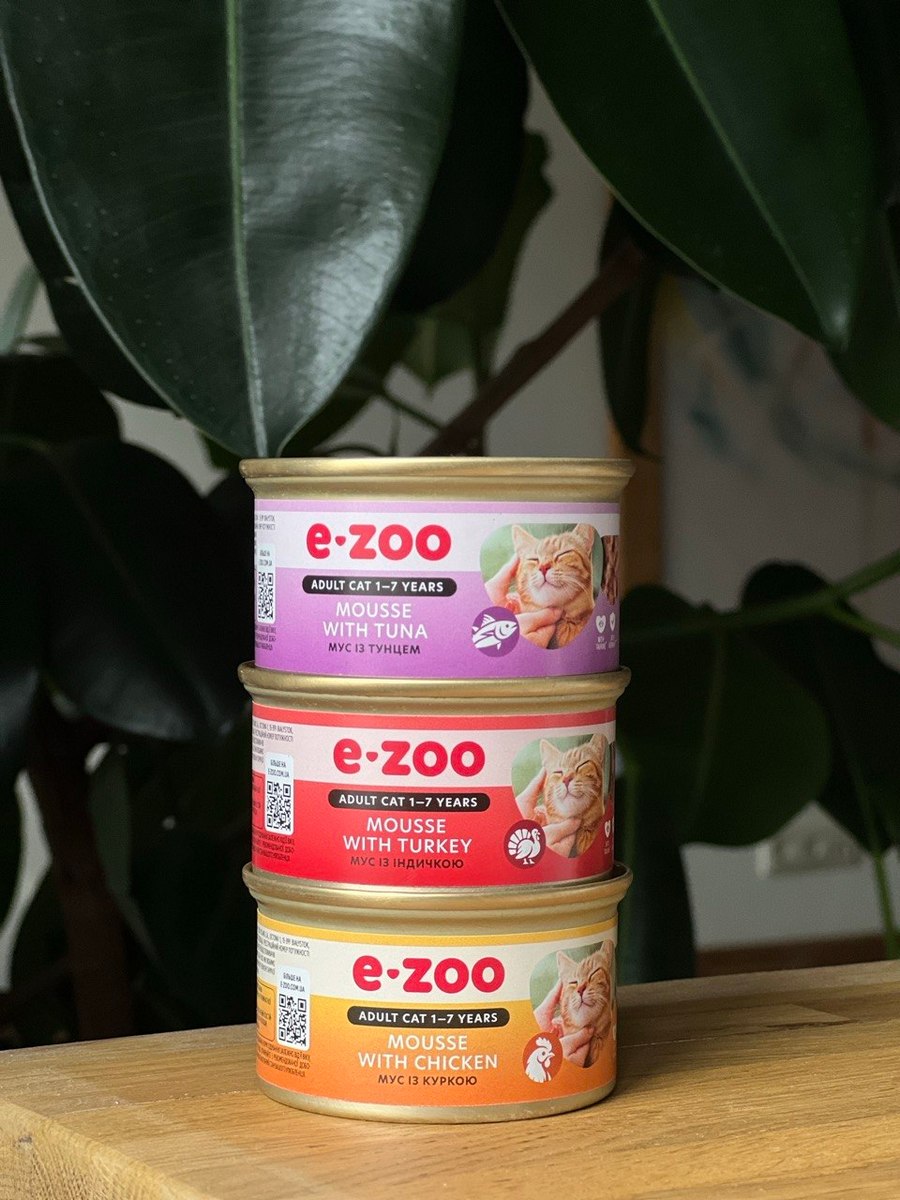 У першій лінійці торгової марки E-ZOO™ представлено чотири смаки для дорослих котів і кошенят.
