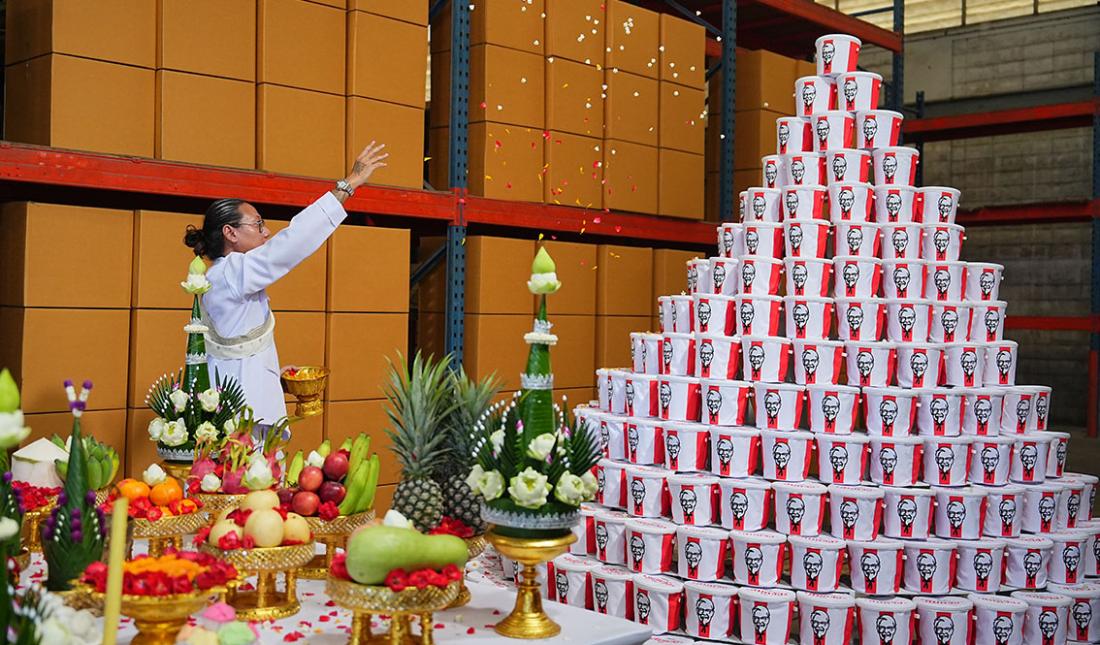 Кампанія "Відерце удачі" заснована на тайських віруваннях, пов'язаних з добрими знаками, особливо на традиції пошуку талісманів на удачу на початку року. Щоб втілити цю ідею в життя, KFC провела традиційну церемонію благословення. У ній взяли участь співробітники мережі —вони молилися, наповнюючи мішечки позитивною енергією.