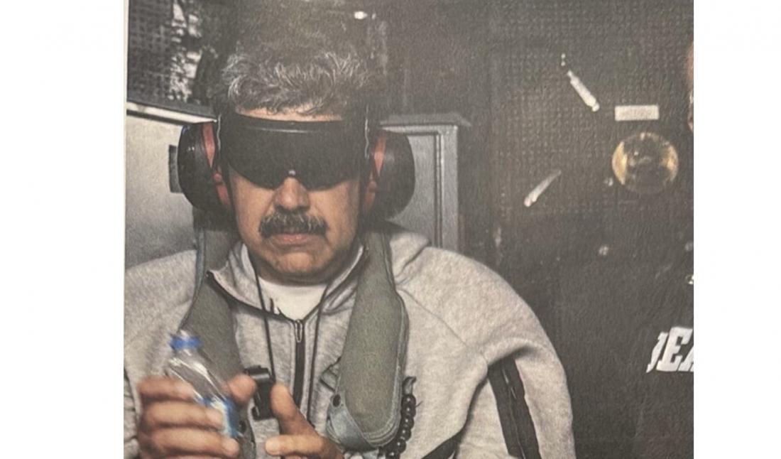 На вірусному фото Мадуро зображений із зав'язаними очима і в наручниках на борту авіаносця USS Iwo Jima, в повному комплекті Nike Tech Fleece: толстовці та спортивних штанах сірого кольору з чорними деталями.