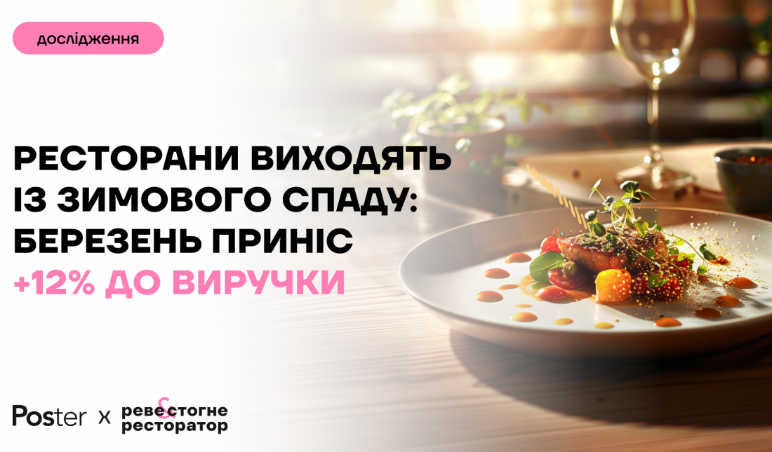 Навесні український ресторанний ринок почав відновлюватися після складного зимового періоду. За даними дослідження компанії з автоматизації закладів Poster, виручка закладів у березні зросла на 12% у порівнянні із зимовими місяцями та на 5% рік до року.
