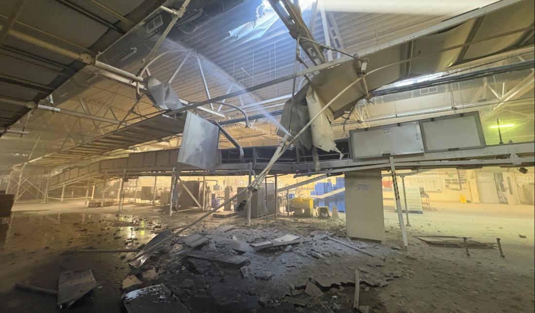 Ракета попала в одно из производственных зданий. К счастью, обошлось без жертв.