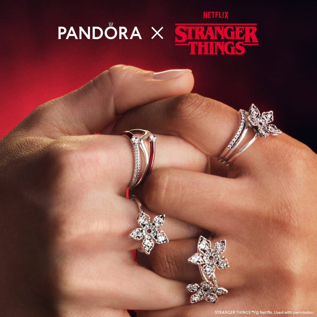 Бренд прикрас Pandora постійно робить колаборації із серіалами або фільмами, створуючи щоденні аксесуари для фанатів. Хіт від Netflix “Дивні дива” не став винятком. Бренд створив тематичні шарми, підвіски та інші прикраси у формі велосипеда, касети та навіть демогоргона. І більшість з прикрас світиться в темряві! Кожна прикраса символізує сцену, емоцію або персонажа, відгукується в душі фанатів, тому й працює ефективно.