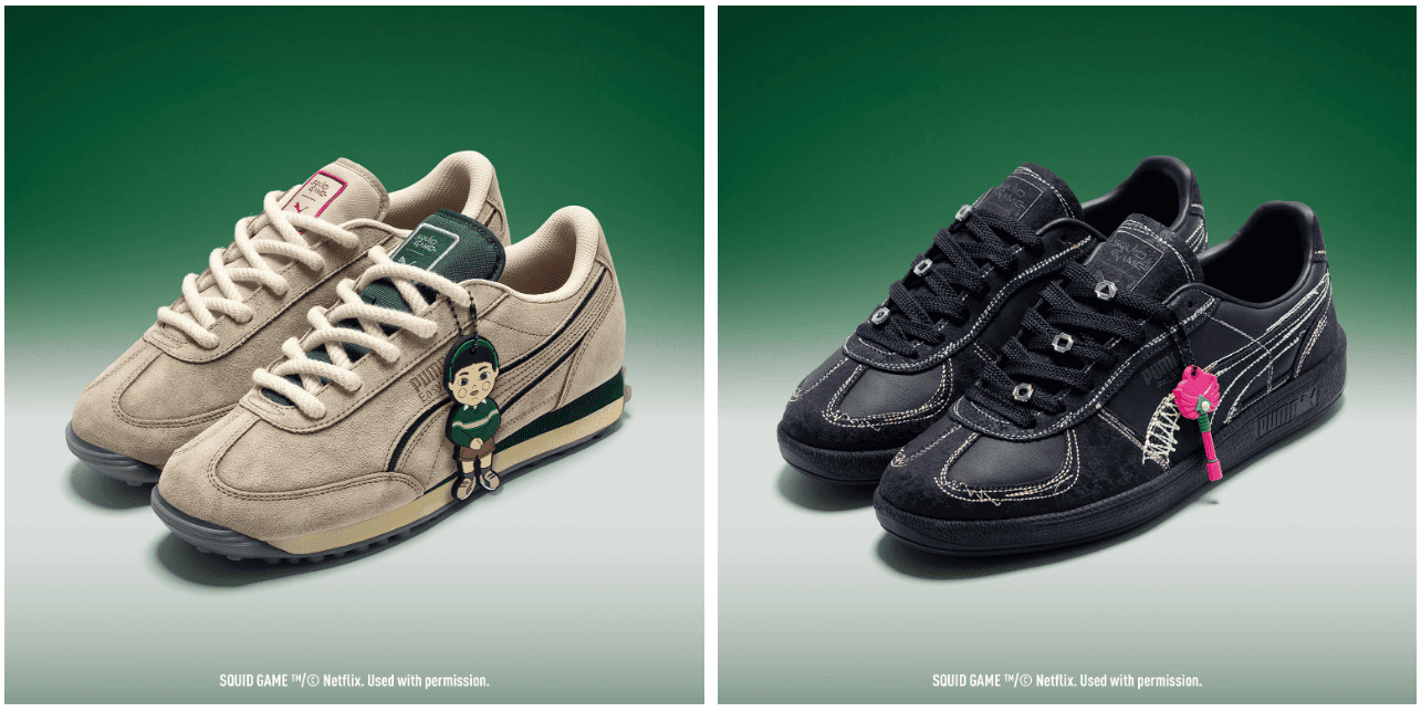 Це вже другий раз, коли PUMA зробила гучну колаборацію із “Грой в кальмара”. Колекції зберігають естетику серіалу та будуються навколо випробувань головних героїв.