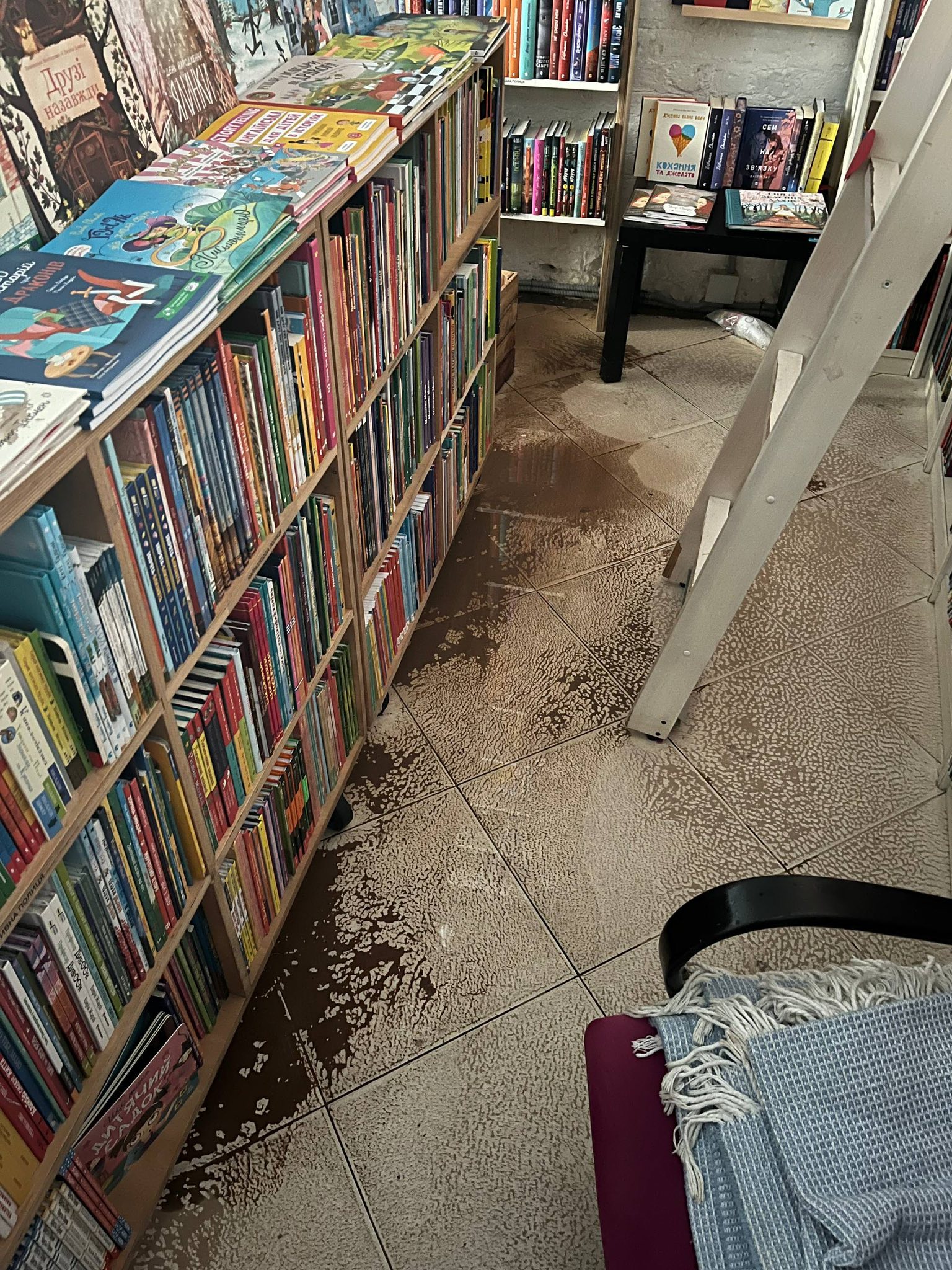 Книгарня "Моя книжкова полиця" на вулиці Євгена Чикаленка, 7 у Києві опинилася під загрозою повного закриття через масштабне затоплення. Про це повідомила власниця закладу, видавчиня Наталія Моспан.
