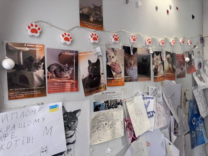 Щоб привернути увагу відвідувачів до котиків, Евеліна створила в кафе дошку з їхніми історіями та відгуками відвідувачів. Зіркою закладу є кіт Мартін.