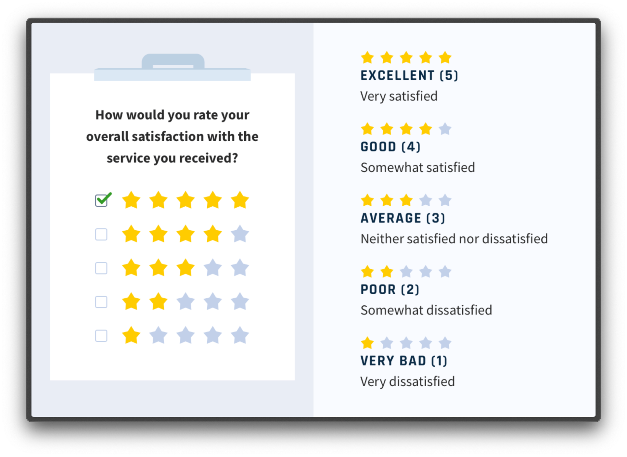 Опитування з єдиним питанням. Після взаємодії з компанією клієнтам пропонується відповісти на запитання на кшталт «Наскільки ви задоволені нашим обслуговуванням?», використовуючи шкалу від 1 до 5 або від 1 до 10.