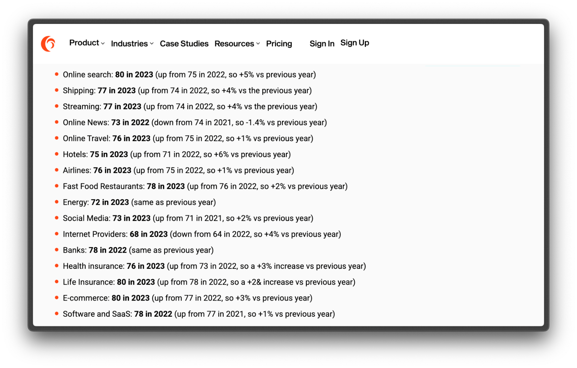 За даними Hubspot, сучасним компаніям варто орієнтуватися на показник у межах від 75% до 85%. Для різних сфер оптимальний показник відрізняється лише мінімально: