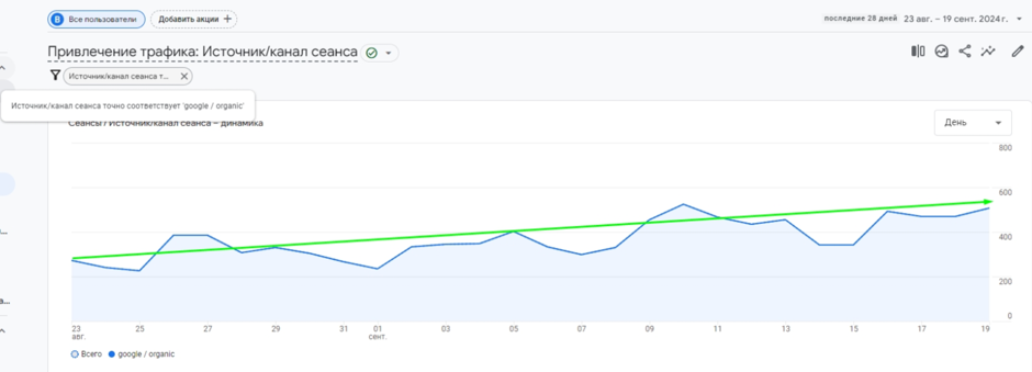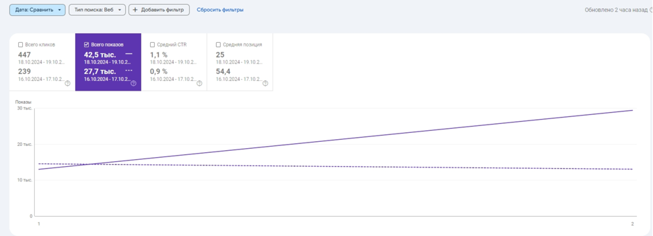 На момент написання статті позиції сайту продовжують покращуватися: буквально за останні два дні кількість показів у порівнянні з попередніми зросла майже вдвічі.
