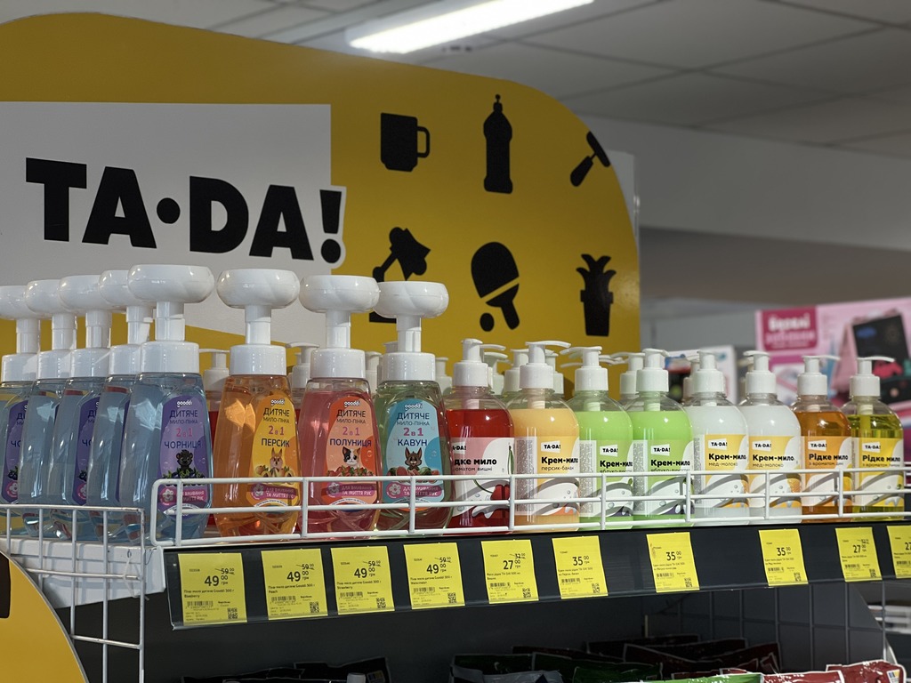 «Асортимент мережі налічує близько 25 тисяч товарних одиниць, серед яких чимала доля припадає на власні торгові марки. Їх TA-DA! має вже три: вони охоплюють широкий спектр товарів для дому, включаючи дитячі іграшки, господарські товари, кухонне приладдя та посуд, — розповідає Тетяна Каріка, Brand Director мережі TA-DA!. — Ключова особливість власних торгових марок TA-DA! — висока якість продукції у поєднанні з оптимальною ціною. Відсутність витрат на імпорт, пряма співпраця з виробниками без посередників дозволяє TA-DA! пропонувати якість товарів не гіршу, ніж у відомих брендів, але за більш вигідною ціною».