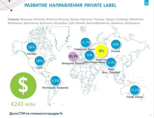 Собственные торговые марки сетей являются еще одной возможностью ответить на запрос потребителей в экономии. Считается, что цены на продукты СТМ значительно ниже, чем на продукты конкурентов за счет сокращения затрат на рекламу и маркетинг. Сейчас оборот СТМ быстро растет во многих категориях, однако все равно очень далек от уровня других стран. В Украине доля Private Label составляет в среднем около 8%, а вот, к примеру, в Германии эта цифра — 34,5% (данные Nielsen 2014г.).