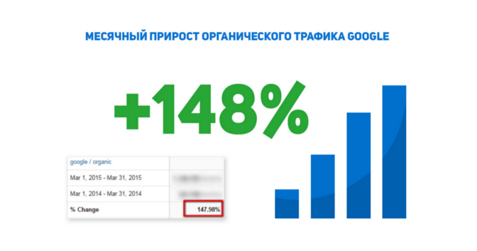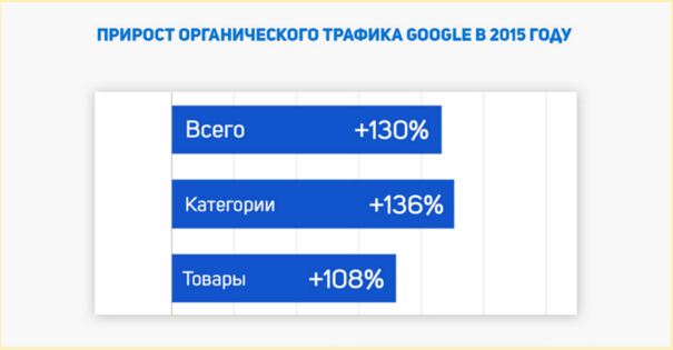 В результате проведенных работ с весны 2013 года началось восстановление органического трафика — за 2014 год рост в Google +120%.