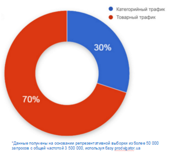Мы свели общую статистику по проектам и вывели закономерность, что в среднем товарного трафика в 2,5 раз больше, чем категорийного. К тому же коэффициент конверсии товарного трафика существенно выше.