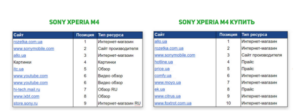 При этом частотность SONY Xperia M4 — 1000, а SONY Xperia M4 купить — 50.