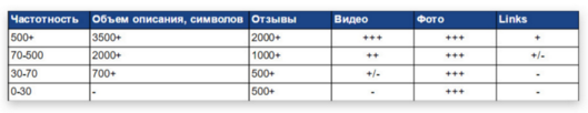 Мы разработали таблицу необходимых параметров для товаров с разной частотностью.