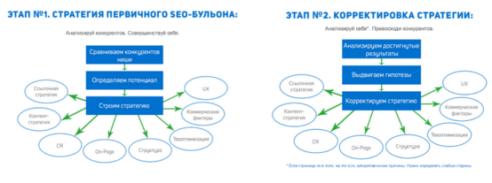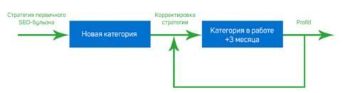 Хоть категорийного трафика намного меньше, категорийные запросы частотные и акцент на них особенный. Для достижения результата следить за динамикой необходимо вдвое бдительнее. Основные этапы стратегии по категорийным запросам:
