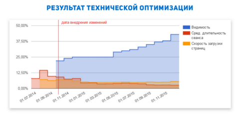 Внедрена оптимизация скорости и юзабилити страниц, результаты которой видны на графике ниже.