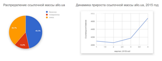 Когда начали анализировать сайт «АЛЛО», первоначальные догадки оправдались: мы обнаружили, что ссылочная масса заспамлена и есть проблемы с внутренней оптимизацией. Не откладывая дело в долгий ящик, параллельно с дальнейшим анализом сайта начали углубляться в анализ ссылочной массы.