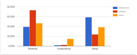 Сравним с распределением типов анкоров с сайтами конкурентов: