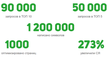 SEO-куратор написал 159 страниц технических заданий. Было закрыто более 1 000 000 мусорных страниц и дублей. Ранее сайт продвигался по ограниченному числу страниц и, соответственно, запросов, что привело к концентрации ссылочного веса на ограниченном количестве страниц сайта. Для плавного распределения ссылочной массы по всему сайту было добавлено в работу более 1 000 запросов и проведена on-page-оптимизация релевантных страниц.
