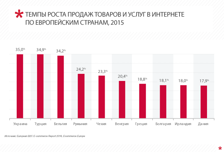 По итогам 2015 года Украина оказалась на первом месте среди европейских стран по темпам роста продаж в интернете.