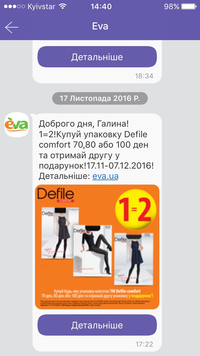 Мессенджеры дают расширенные возможности, в том числе отправлять сообщения до 1 000 символов, что позволяет писать без сокращений и кириллицей. Можно выслать ссылки на сайт, а не телефон 0-800, на который и так мало кто позвонит, или вставить медийные приложения — картинку, купон или изображение продукта.