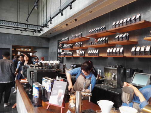 Оказалось, что это — новый саббренд Starbucks — Starbucks Reserve. Премиальный клиентский опыт и привлечение аудитории белых воротничков. Кофейня находится в сердце делового района в Сentral, в стороне от массового трафика из метро, минимум случайных прохожих.