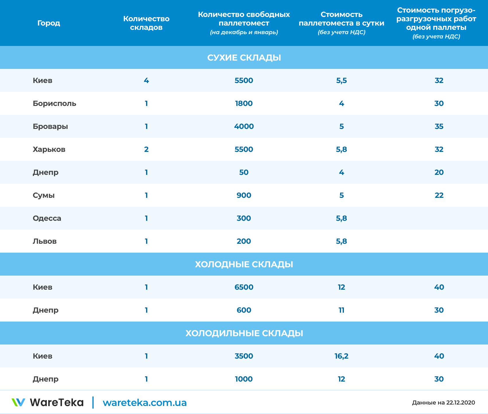На данный момент у партнеров WareTeka есть следующие свободные места: