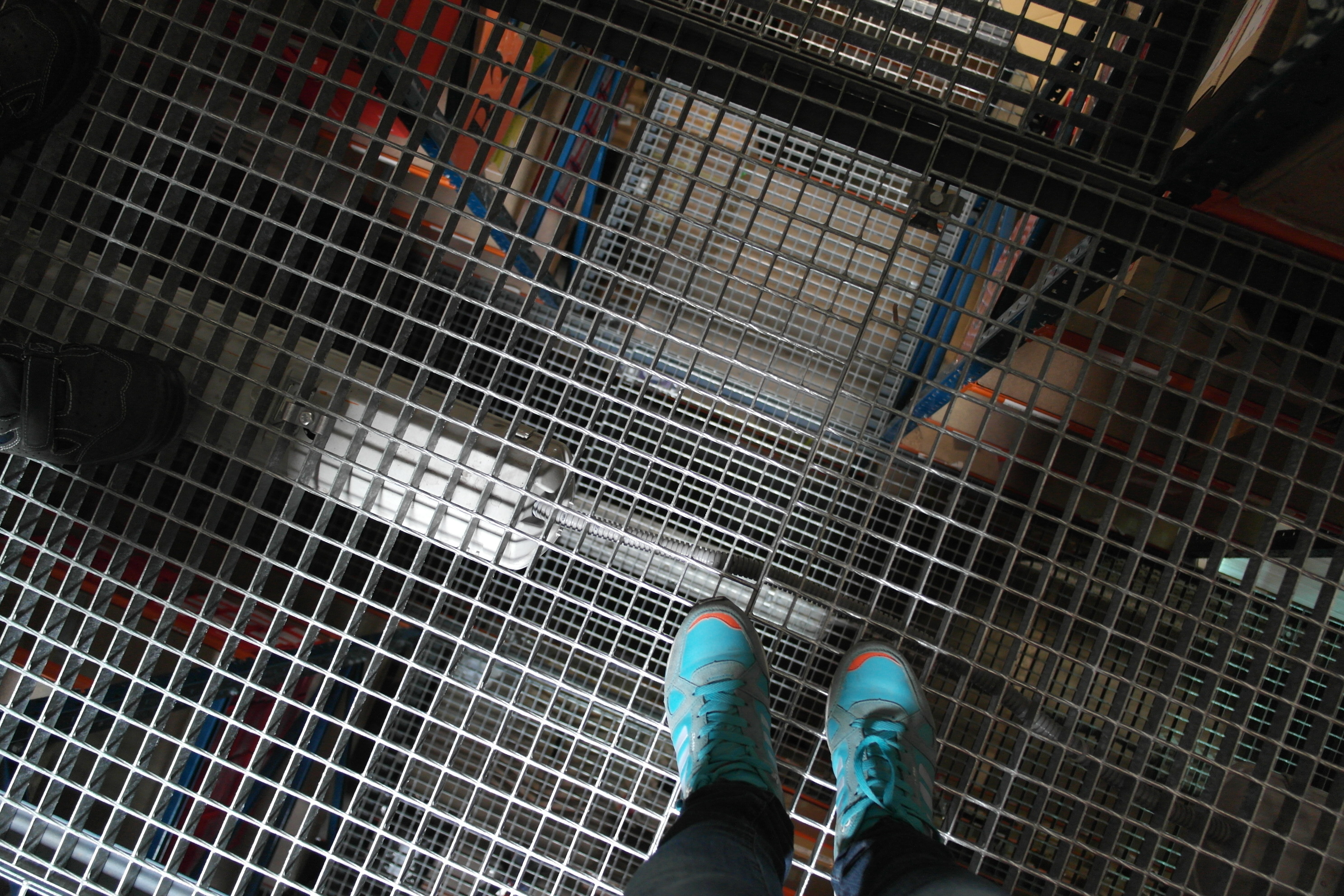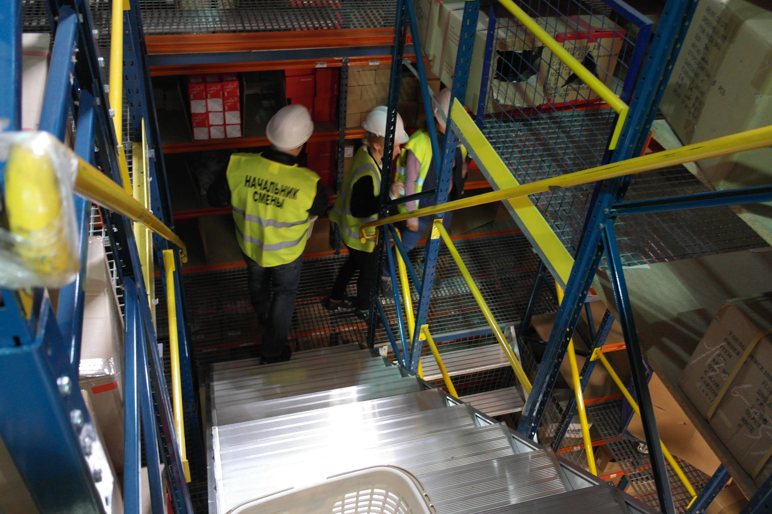 Сотрудник берет сканер, заходит в мезанин, поднимается на нужный этаж.