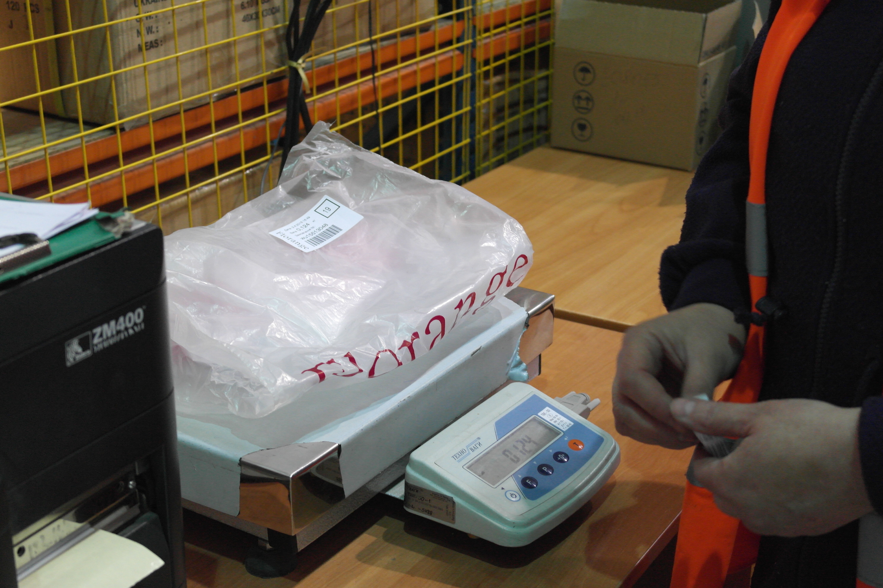 Товар вкладывается в брендированный пакет, взвешивается. Легкая продукция, особенно в случае с интернет магазинами, обязательно взвешивается.