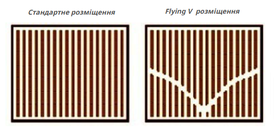 Для правильної організації складу розстановка стелажів має не менше значення, ніж їх вибір. При цьому важлива не лише відстань між стелажами, аби було достатньо місця для роботи складської техніки, а й розташування проїздів. Як показує досвід роботи великих складських комплексів, розміщення стелажів за схемою Flying V скорочує пробіг вантажної техніки на 15%.