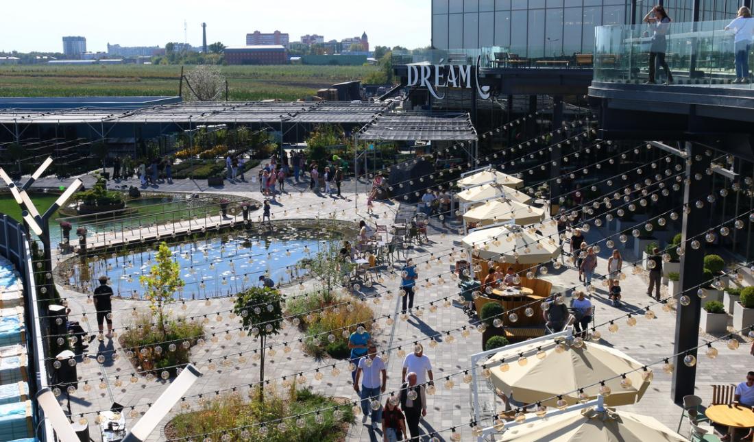 В рамках проєкту компанія також реалізувала літній майданчик з власним озером та штучним водоспадом, який в теплу пору року планується використовувати для проведення свят і фестивалів вина, сиру, морозива тощо. Задля безпеки відвідувачів під ТРЦ було побудовано великий підземний паркінг, що слугуватиме надійним укриттям у випадку повітряних тривог.