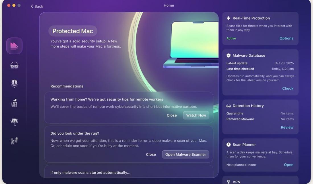 "Деякі шкідливі програми ховаються в найвіддаленіших куточках наших комп’ютерів Mac, у місцях, про які ми ніколи б не підозрювали. Використовуйте сканер шкідливих програм, щоб виявити приховані загрози в системних папках, давно забутих файлах і навіть вкладеннях пошти", — кажуть у MacPaw.