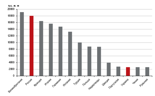 «Для сравнения, в Великобритании в 2008 году объем предложения качественных торговых объектов составлял чуть более 18 млн кв. м, в то время как в России он был почти вдвое ниже — 9,5 млн кв. м, а на территории Украины — всего 1,5 млн кв. м. За последние шесть лет российский рынок качественных центров увеличился более чем в два раза — на 9,8 млн кв. м — и вышел на второе место по общему предложению торговых площадей. В 2013–2014 годах Россия обогнала по этому показателю такие страны, как Италия и Франция, где насчитывается 15,7 млн кв. м и 16,5 млн кв. м соответственно, — комментирует Мария Шпакова, аналитик рынка торговых площадей компании JLL. — Украинский рынок ритейла также увеличился более чем в полтора раза с 2008 года, и на данный момент его общий объем оценивается на уровне 2,6 млн кв. м. В результате сегодня Украина занимает 12-е место в Европе по совокупному предложению торговых центров».