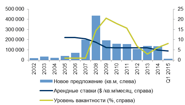 Все объекты, ввод в эксплуатацию которых заявлен на период с апреля по декабрь 2015 года, строятся для собственных нужд. В то же время ввод в эксплуатацию ряда спекулятивных объектов, предназначенных для сдачи в аренду на открытом рынке, отложен до улучшения общей динамики рынка.