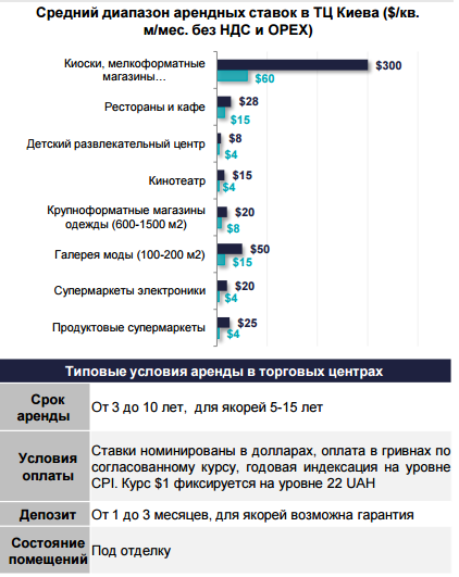 - В киевских ТЦ удалось сохранить привязку арендных ставок к доллару США, которые фиксируются на поквартальной основе;