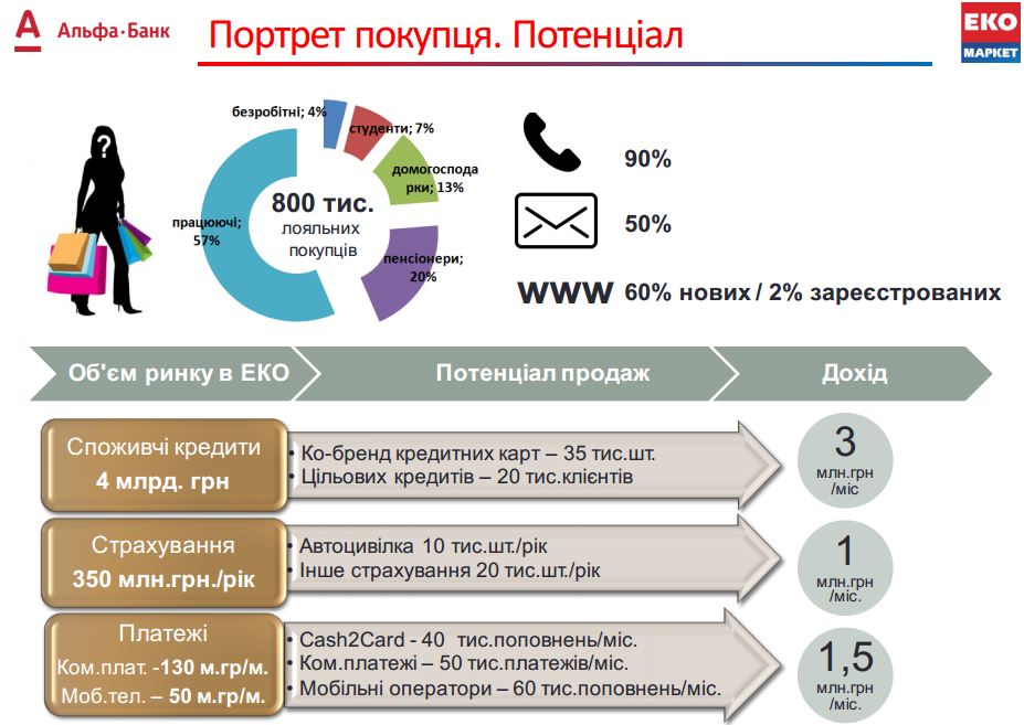 По расчетам «ЭКО-Маркета» и их партнеров, покупателям сети можно выдать кредитов на общую сумму 4 млрд грн.