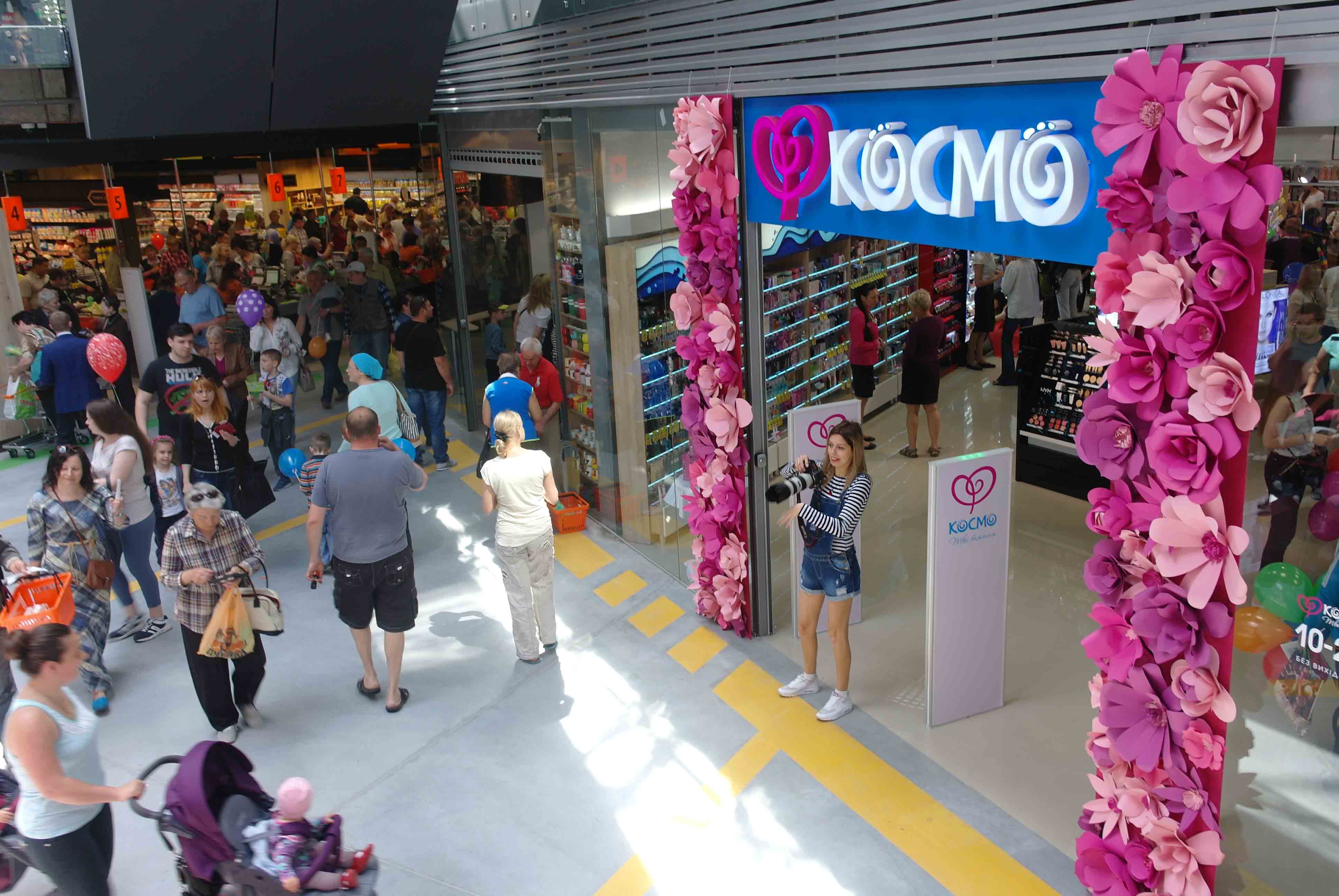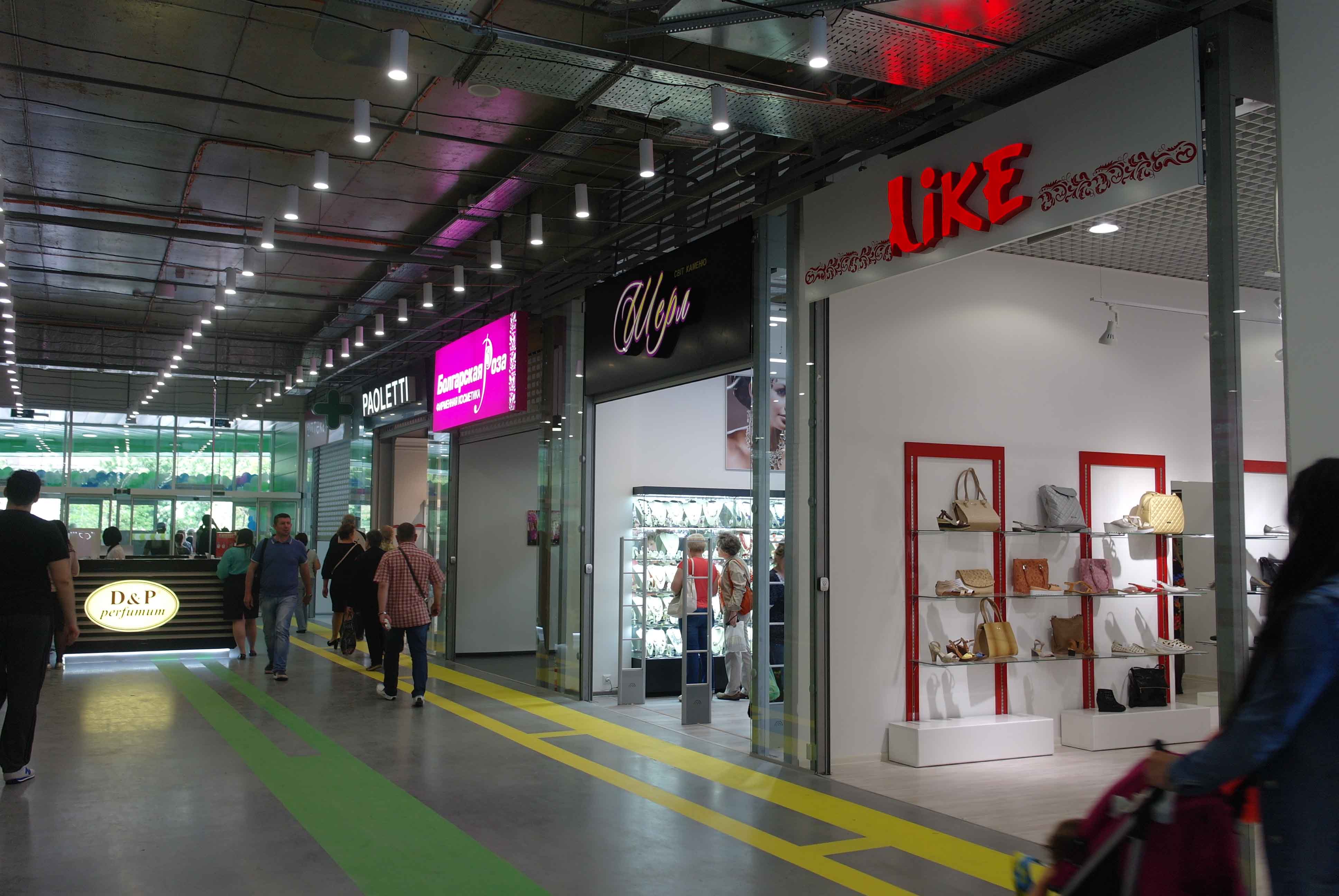 В торговом центре три входа. На нулевом этаже, помимо «Сільпо» и пока не открывшегося супермаркета электроники Сomfy, работают магазин косметики и парфюмерии «Космо», магазин товаров для животных «Мастер Zoo».