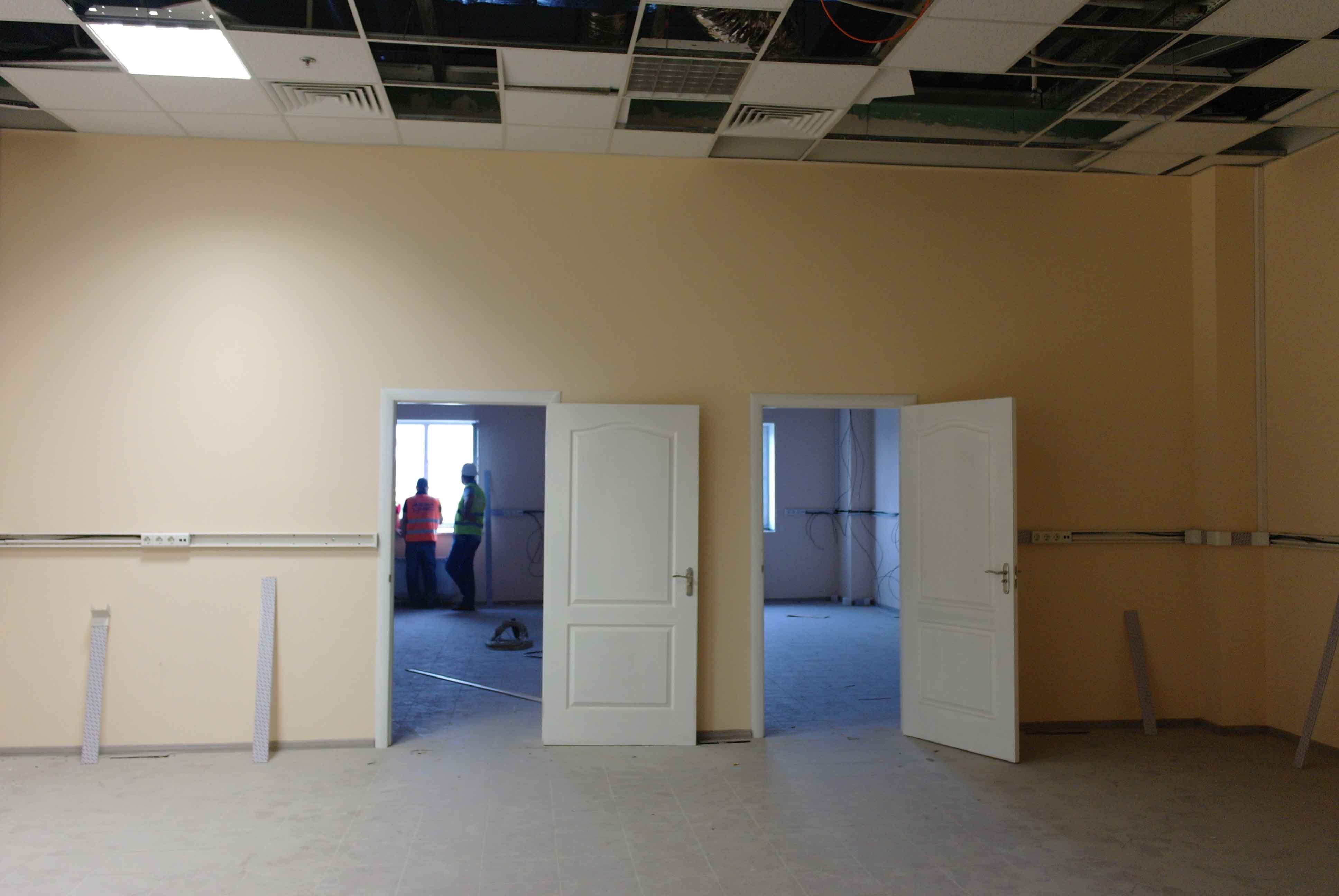 Все коммуникации планируют спрятать под навесными потолками, для которых уже навешены крепежи.