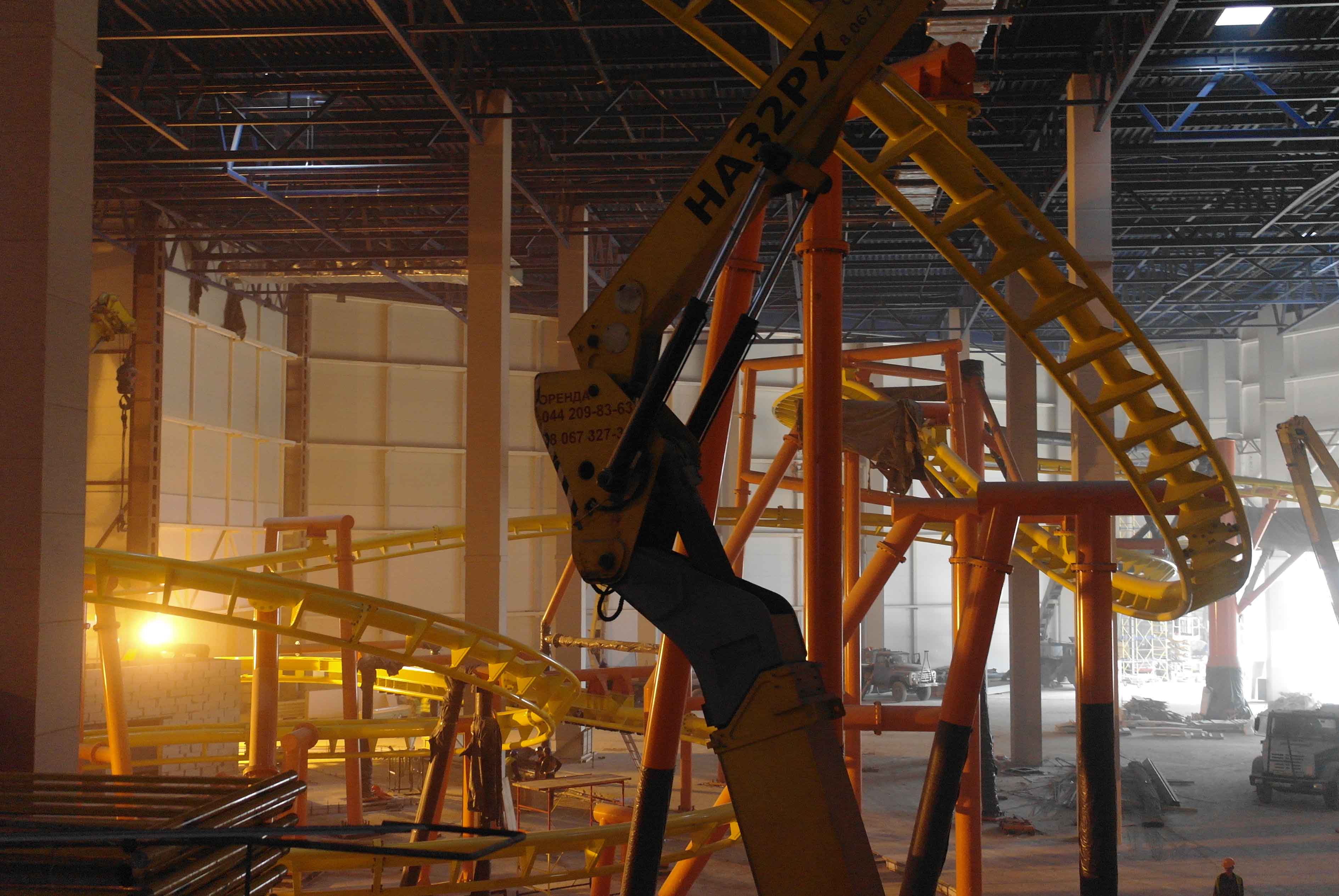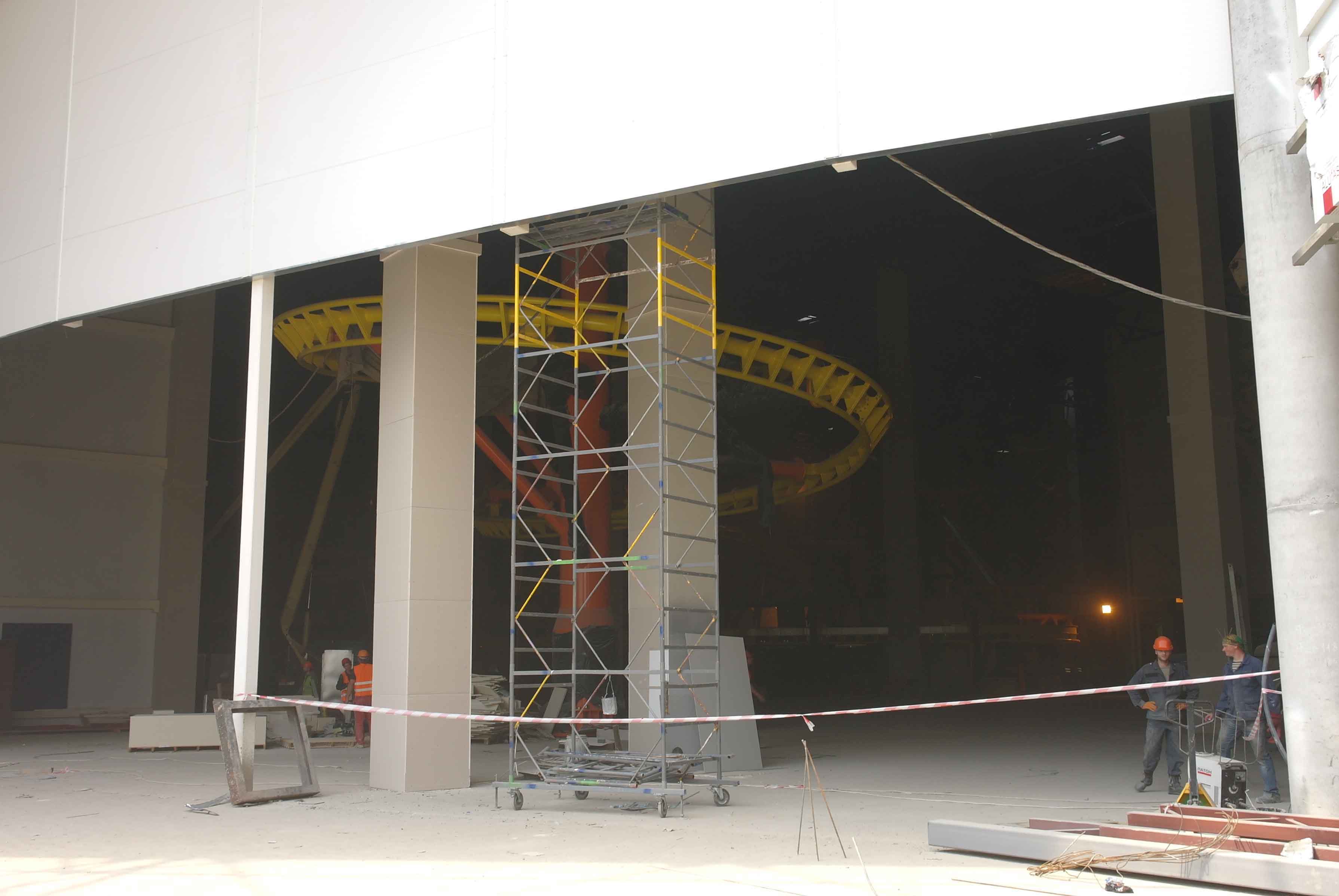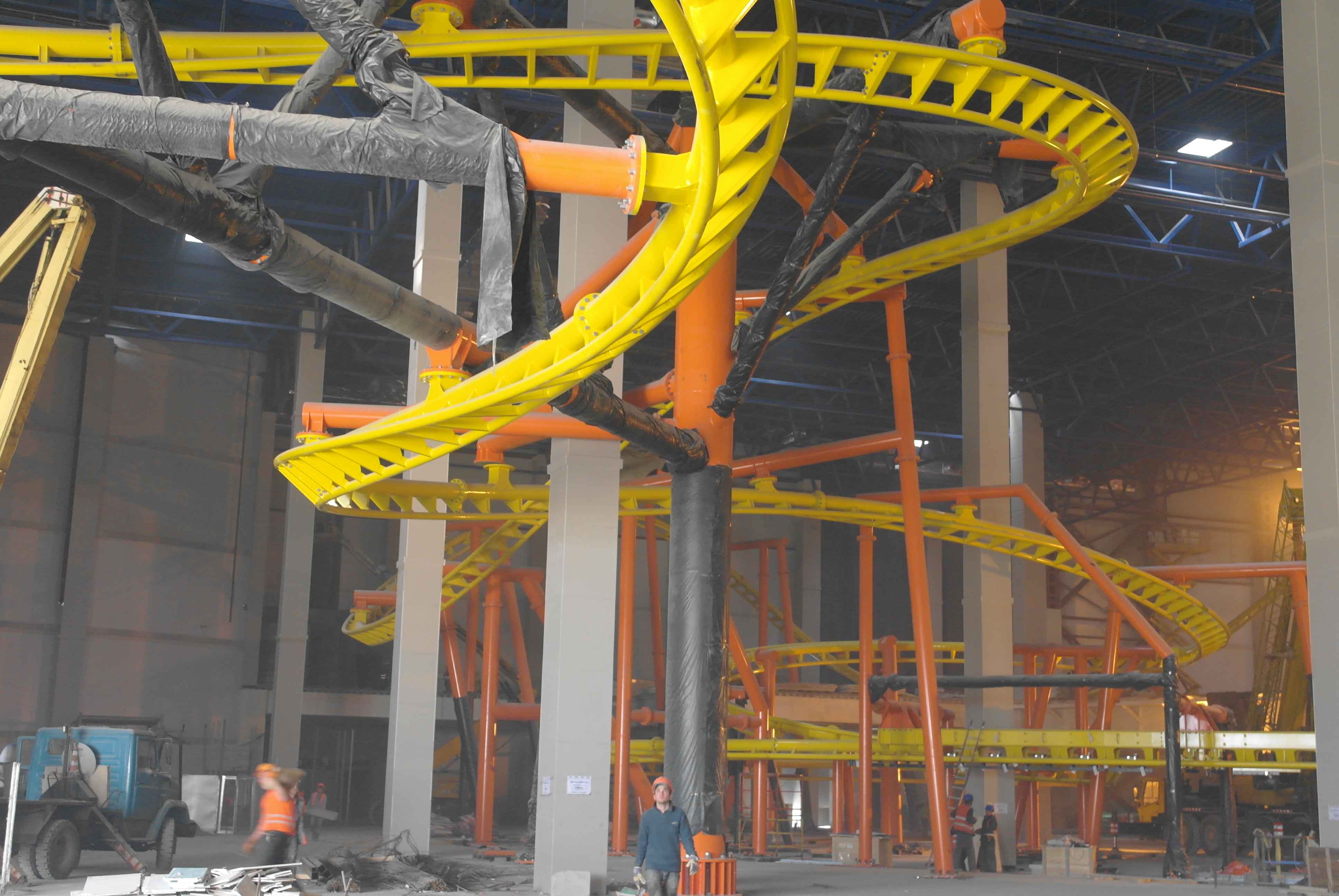 Согласно презентации проекта, в ТРЦ должен быть еще аквапарк. Пока здесь находятся детали других аттракционов.
