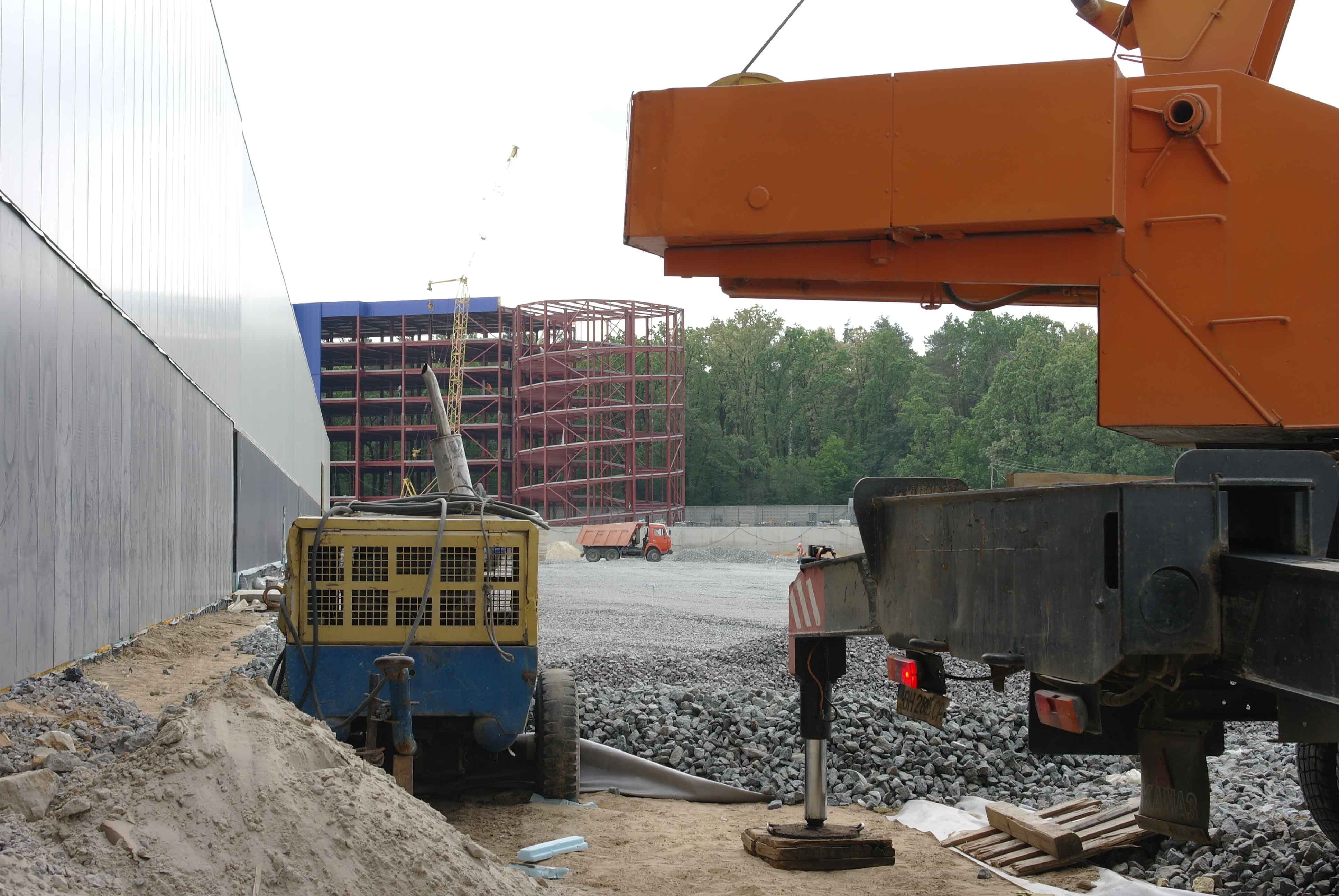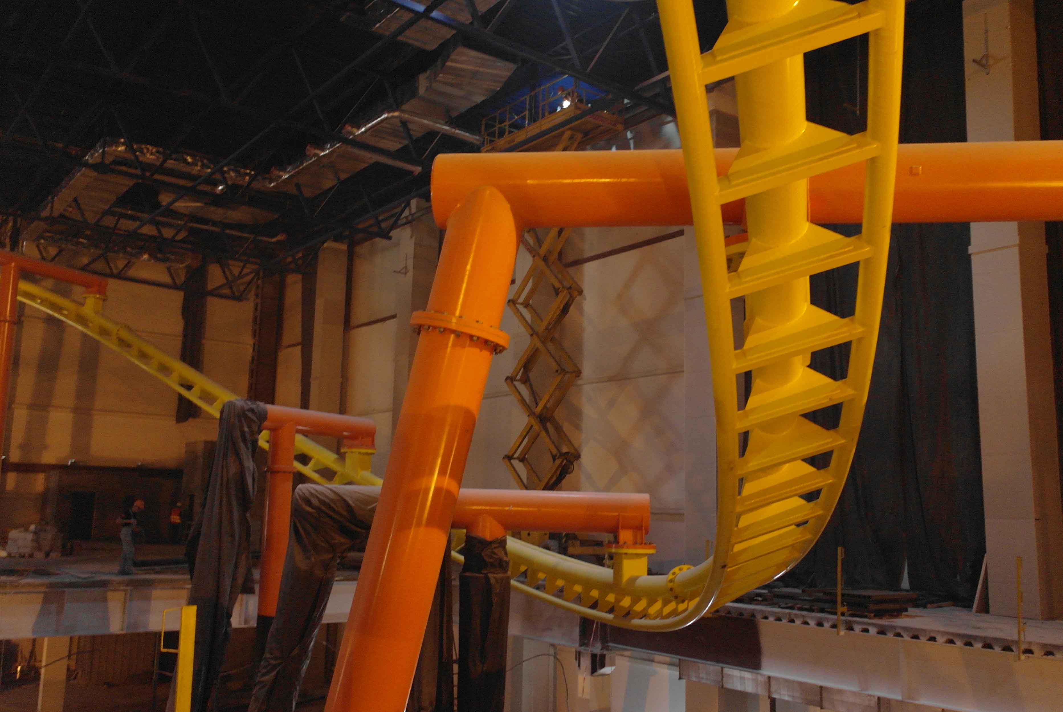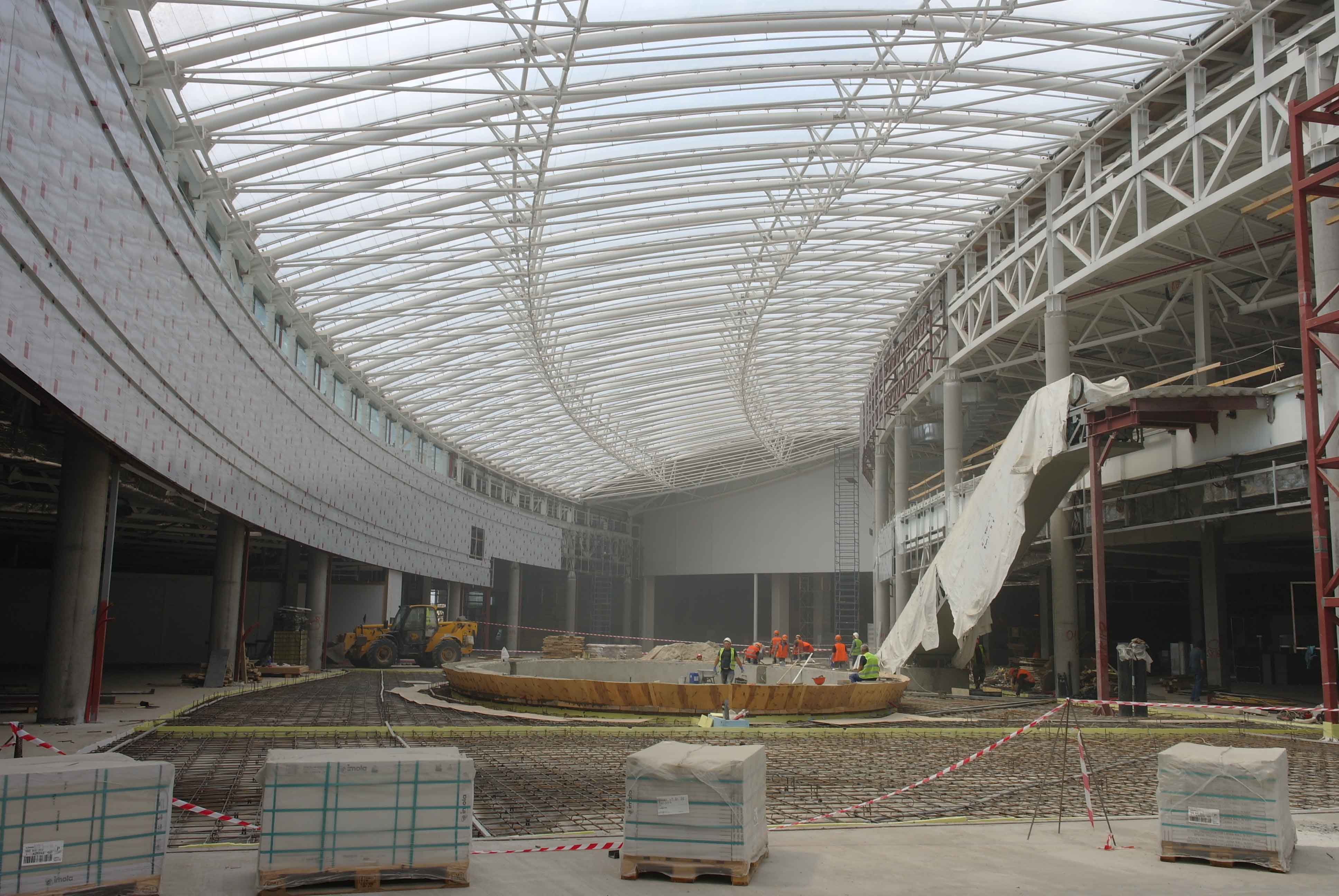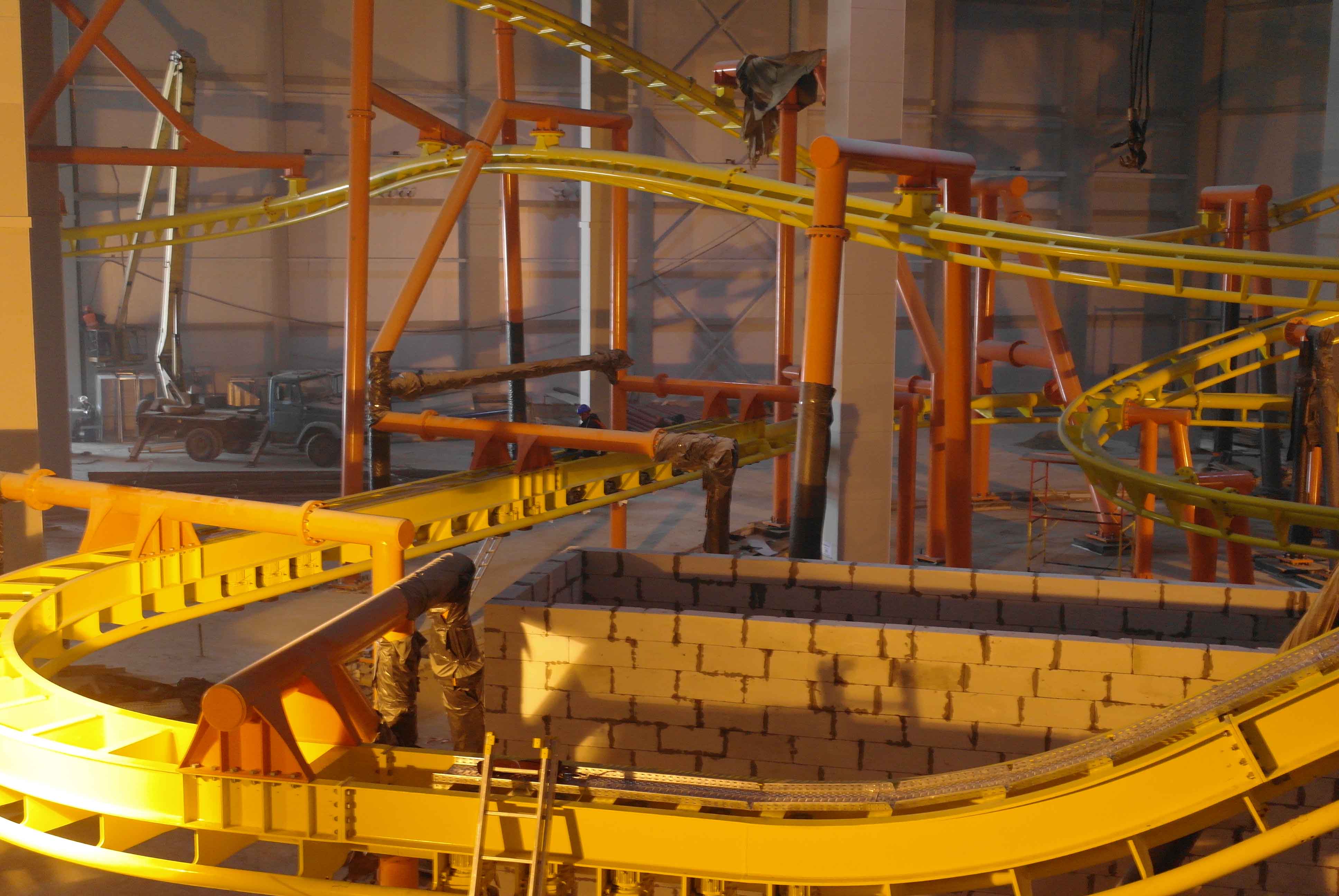 Согласно презентации проекта, в ТРЦ должен быть еще аквапарк. Пока здесь находятся детали других аттракционов.