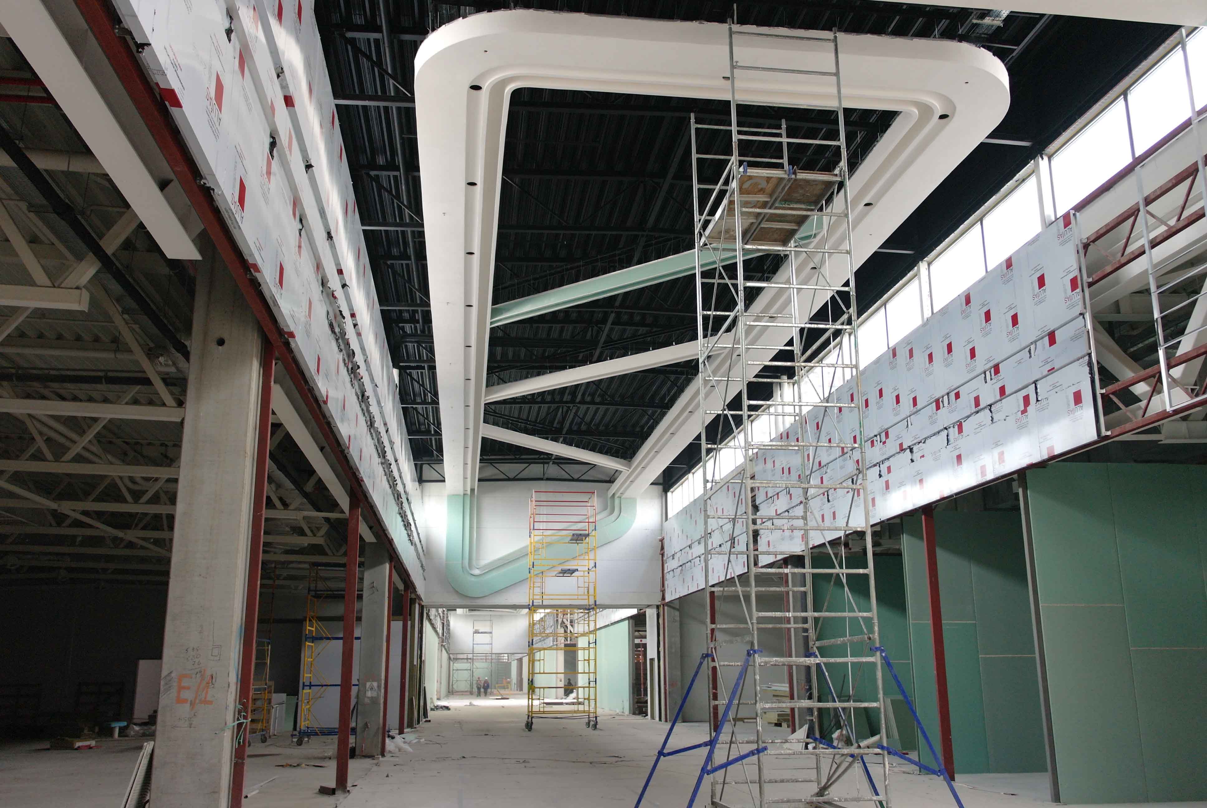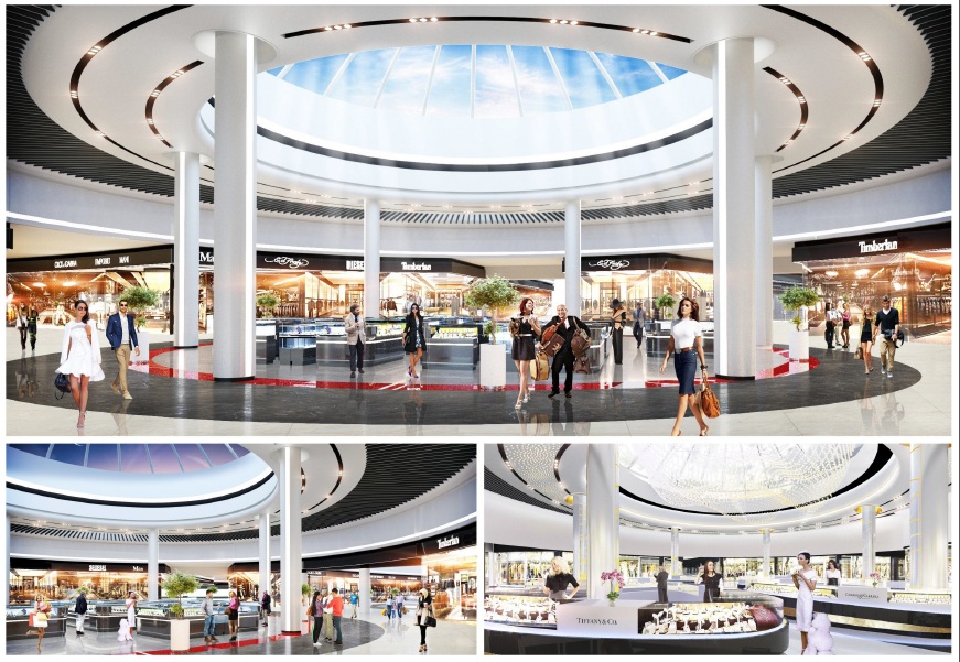 На первом этаже установлены три эскалатора для перехода на второй этаж, где будут находиться офисные помещения и продолжение бутиковой галереи.