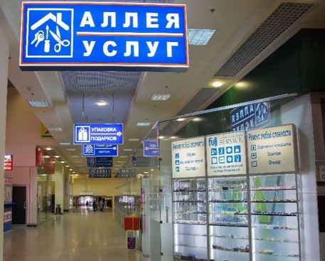 Аллея услуг появилась в январе 2016 года. Там работают арендаторы, которые предоставляют мелкие бытовые услуги — от ремонта одежды и обуви, сервиса мобильных телефонов до печати на футболках.