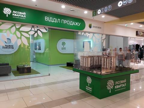 «Альянс Новобуд» — застройщик жилых комплексов «Лесной квартал» и «Зеленый квартал» в пригороде Киева. Филиал компании открылся в торгово-развлекательном центре в ноябре прошлого года, его площадь — 54,65 кв. м.