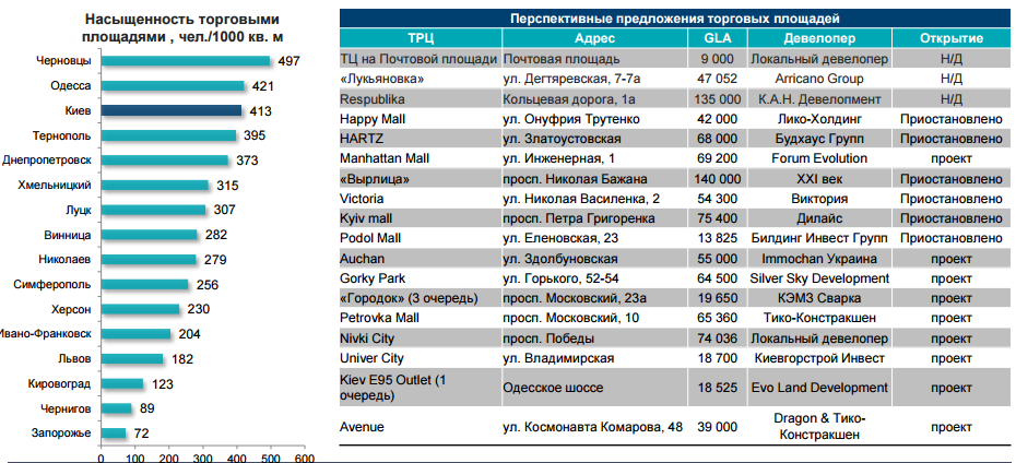 Во втором полугодии запланированы к открытию в Киеве ТРЦ Lavina mall и ЦУМ. Во втором полугодии предложение торговых площадей составит 138 500 кв. м.