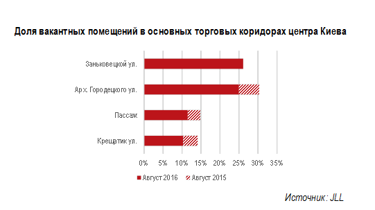 Компания JLL представляет анализ ситуации на рынке основных торговых коридоров в центре Киева на конец августа 2016 года