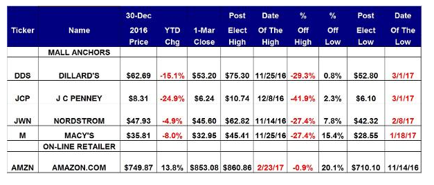 Показательно сравнение четырёх классических «якорей» американских моллов и данных Amazon: