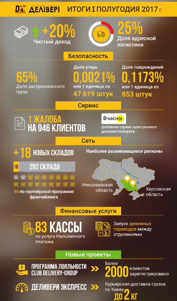 Чистый доход, который «Деливери» получила в течение I полугодия 2017 года, на 20% превысил показатель за аналогичный период прошлого года