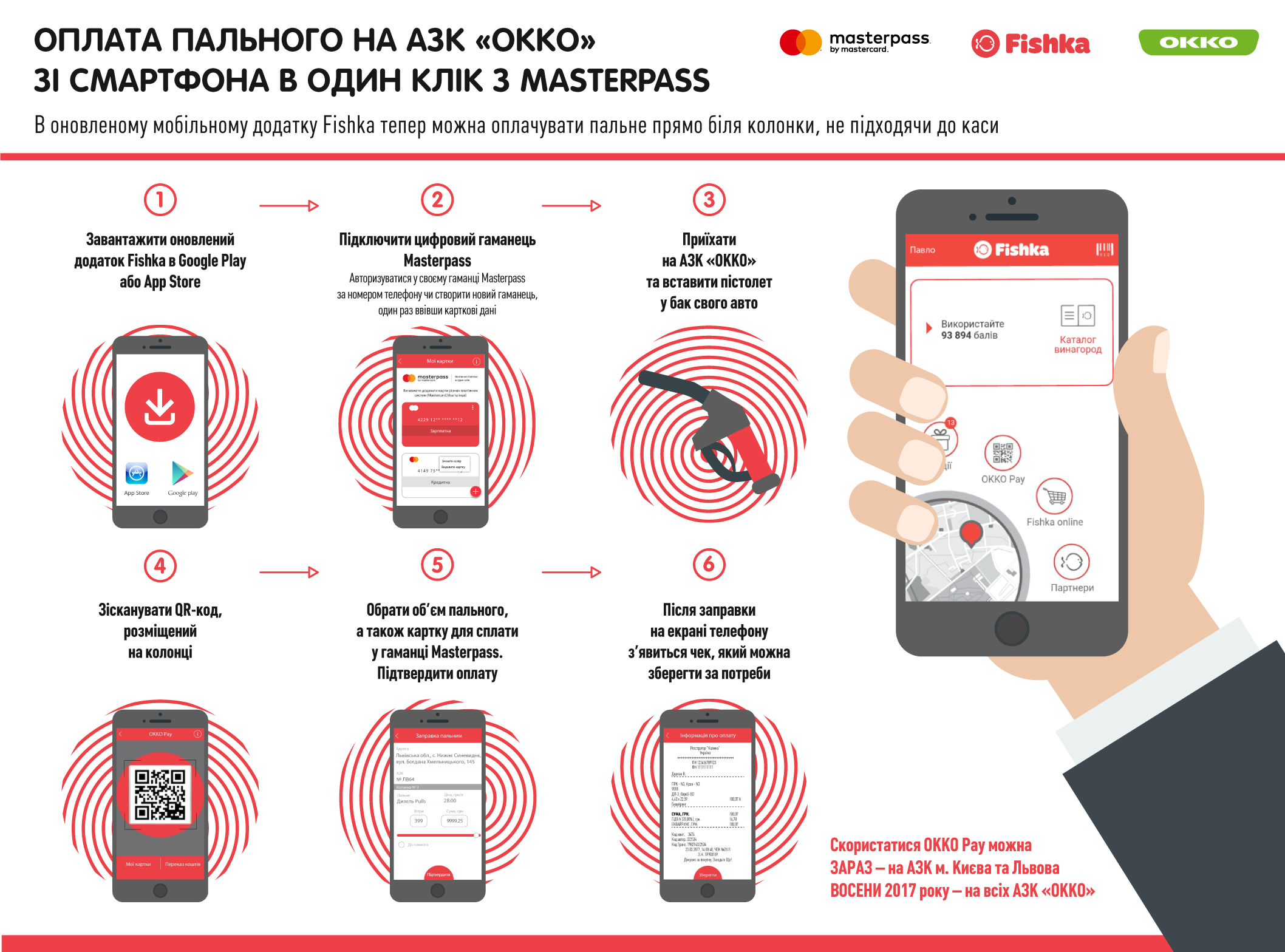 Клиенты «ОККО» могут оплачивать топливо прямо у колонки со своего смартфона с помощью нового сервиса OKKO Pay. Сеть АЗК вместе с компанией MasterСard представила в обновленной версии мобильного приложения Fishka новое платежное решение с интегрированной платформой цифровых кошельков MasterРass. Чтобы поощрить первых пользователей, партнеры также приготовили специальное предложение: до 31 августа все, кто оплатил топливо с помощью ОККО Pay, получат скидку 3 грн на каждый литр.